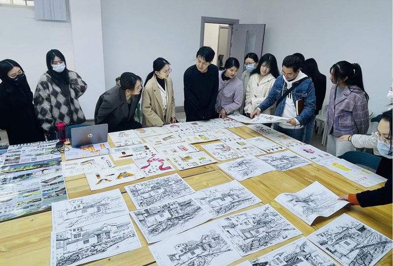 此次作业汇看涉及8个班级4门课程,涵盖了建筑速写、庭院设计、室内陈设设计、展示空间设计专业课程,作业以A2展板和快题的形式呈现,运用手绘和软件设计、排版等手段呈现作品效果,内容丰富充实。此次汇看是对员工作业的一次考核,也是任课教师课堂内容的一次交流。