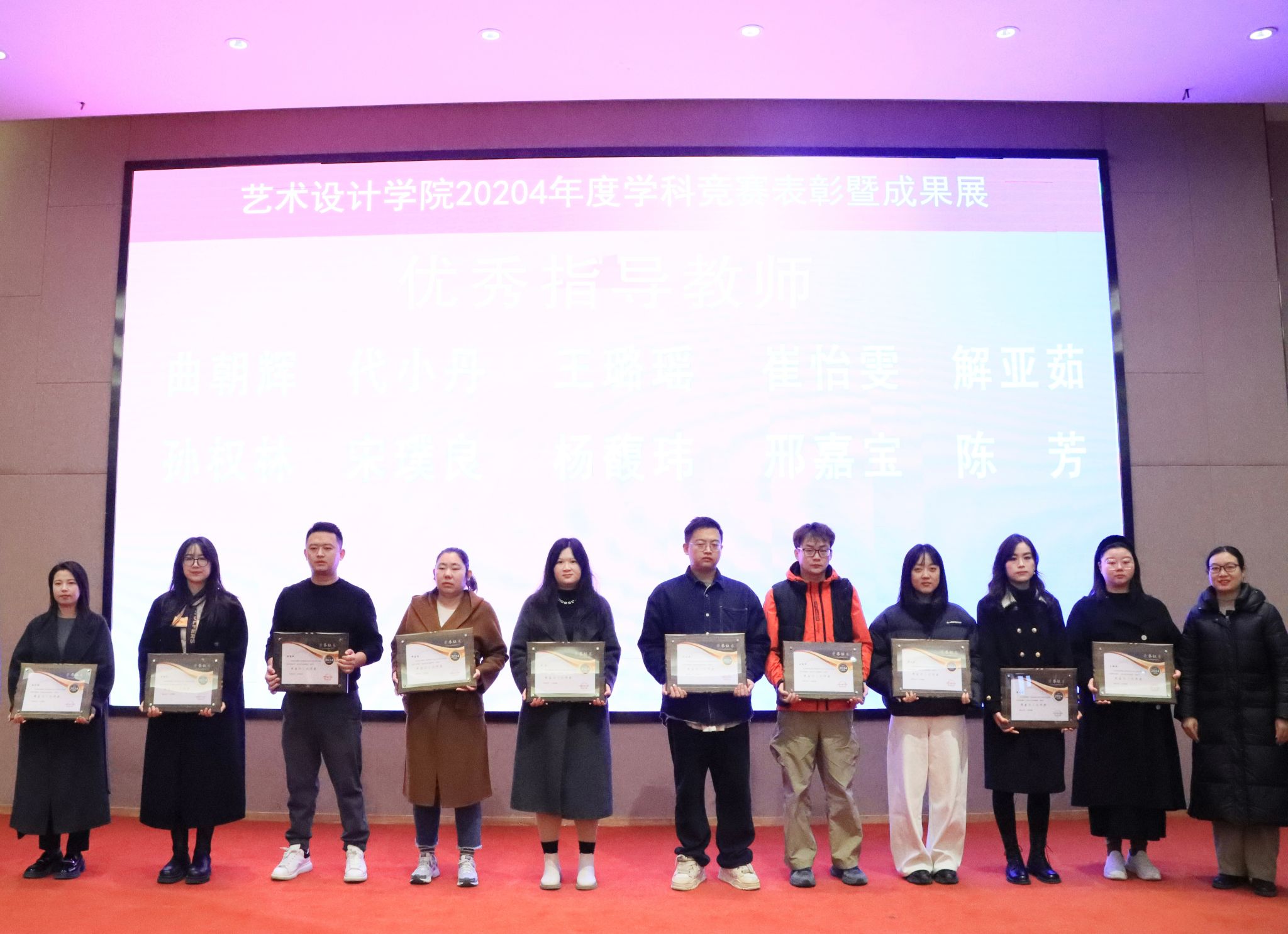成果展示环节,一段精彩视频带领全场观众重温了本年度学科竞赛中的精彩瞬间。视频中的每一帧画面,都饱含着师生们的智慧结晶与辛勤汗水,生动展现了学院在艺术设计领域的深厚实力与独特风采,赢得了阵阵赞叹。