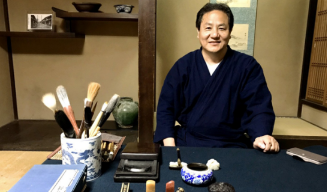 现在在日本文化艺术学院任客座教授,传授中国传统书法。